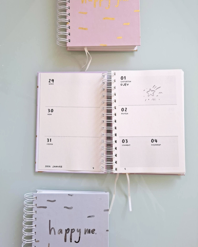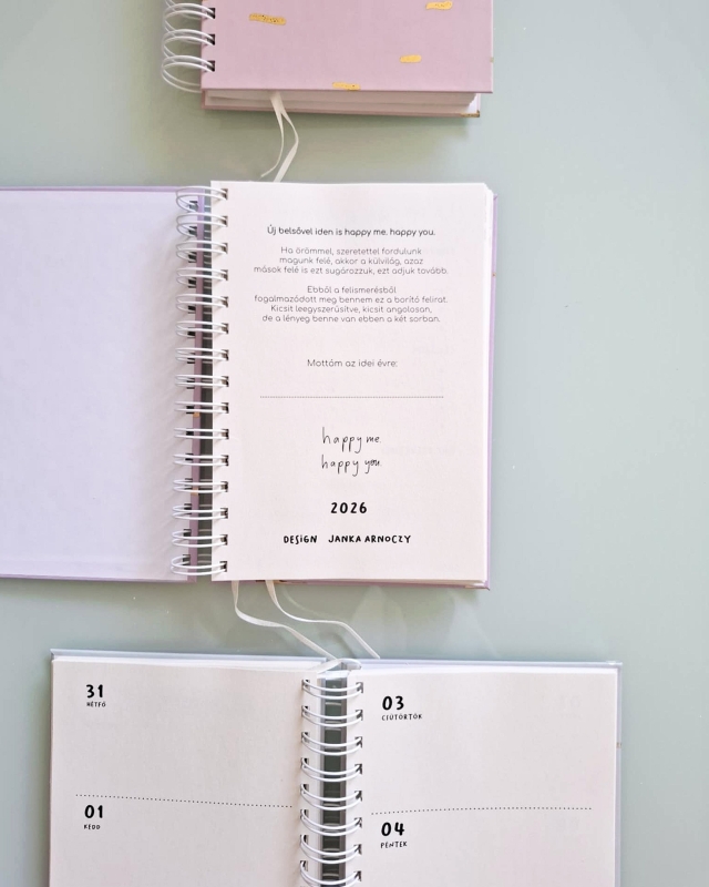 2026-ban újra happy me. happy you. határidőnaplók JANKA ARNOCZY-tól!
