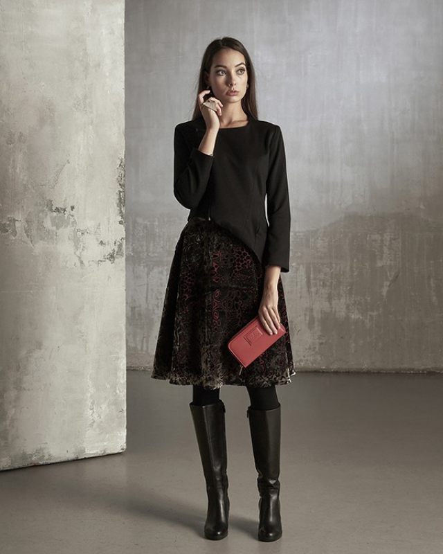 Aszimmetrikus aljú, karcsúsított fazonú, fekete Blézer zippzár segítségével záródik. Ruhákhoz és szoknyákhoz ajánljuk.