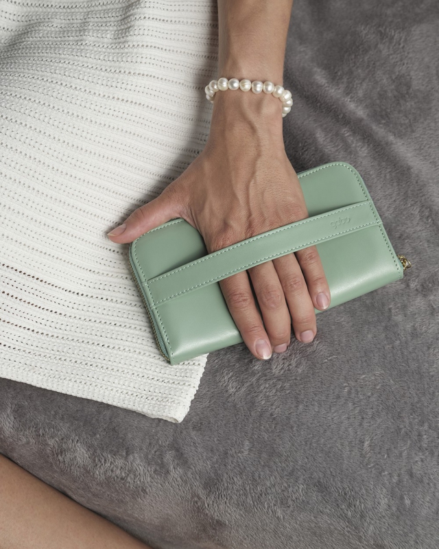 Klasszikus női bőr pénztárca, amelybe12 darab bankkártya fér el. A papírpénznek 4 fakk ad helyet, így utazás során elkülönítve tarthatjuk a különböző pénznemeket. Középen zippzáros tároló található az aprónak. Külső részén egy fogó segitségével pakolás közben is könnyebben kézben tarthatjuk. Belülről is bőrrel bélelt.
