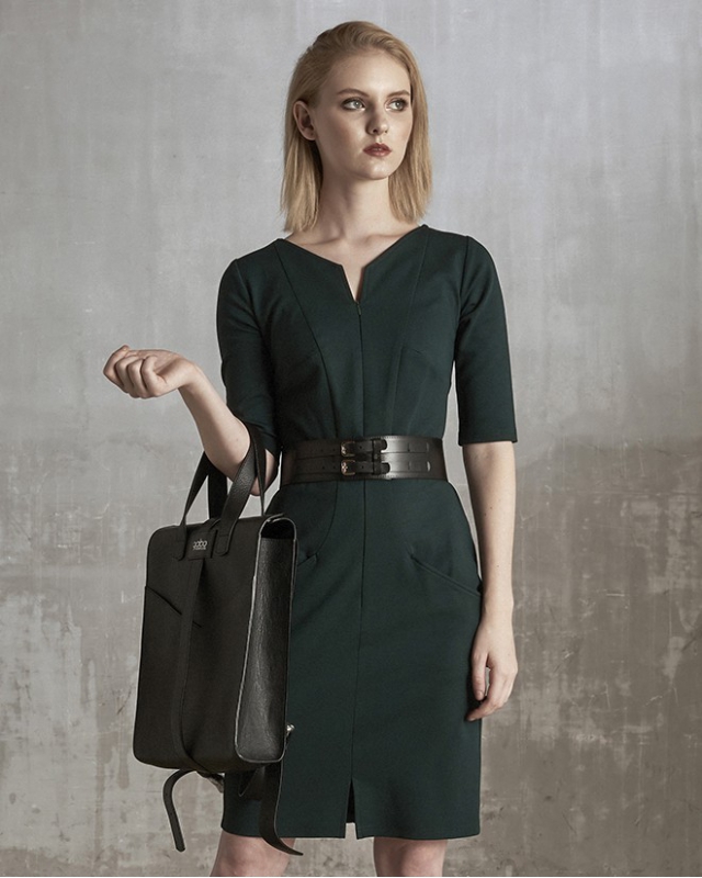 Háromnegyedes ujjú, derékhangsúlyos ruha szabásvonalai geometrikusak, nevét is innen kapta. Eleje közepén zippzár található. Két zsebével igazán kényelmes és csinos viselet.