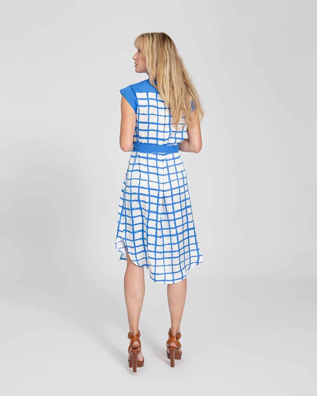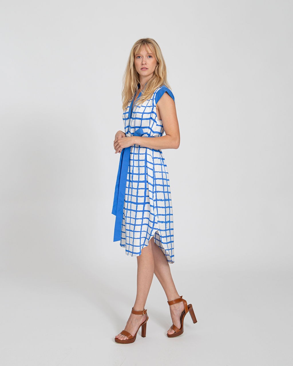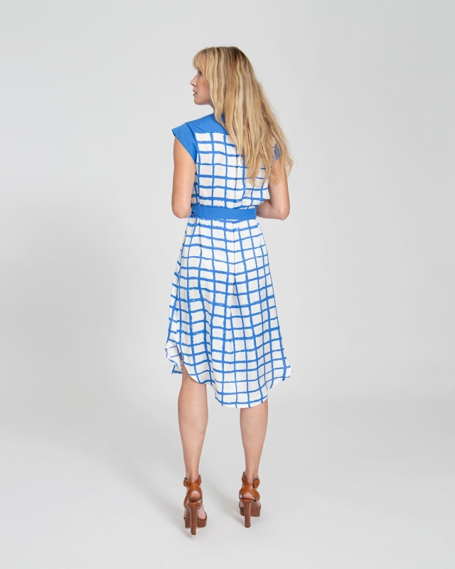 Ez az ingruha fazonú ruha finom, szaténos felületű viszkóz anyagból készült. A legnagyobb melegben is kellemes viselet. Horthatod övvel és öv nélkül is, attól függően, hogy hangsúlyozni szeretnéd-e a derekad, vagy épp arra vágysz, hogy semmi se érjen a testedhez. Ez utobbi teszi nagyon kellemes viseletté a kánikulában. A szoknya hossza takarja a térdeket, de oldalt kicsit lekerekített, utalva az ingek aljának jellegére. Mini ujjai és jelzés értékű gomboló pántja keretezi az arcot.