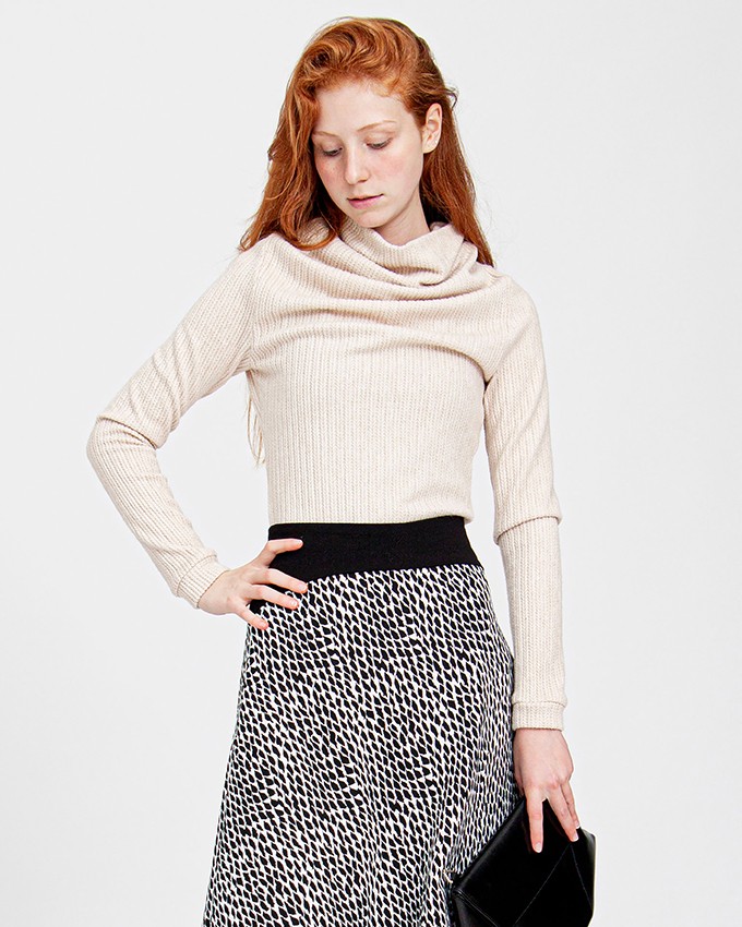 Testhezálló fazonú, meleg pulover anyaga viszkóz (97%) és elasztán(3%).