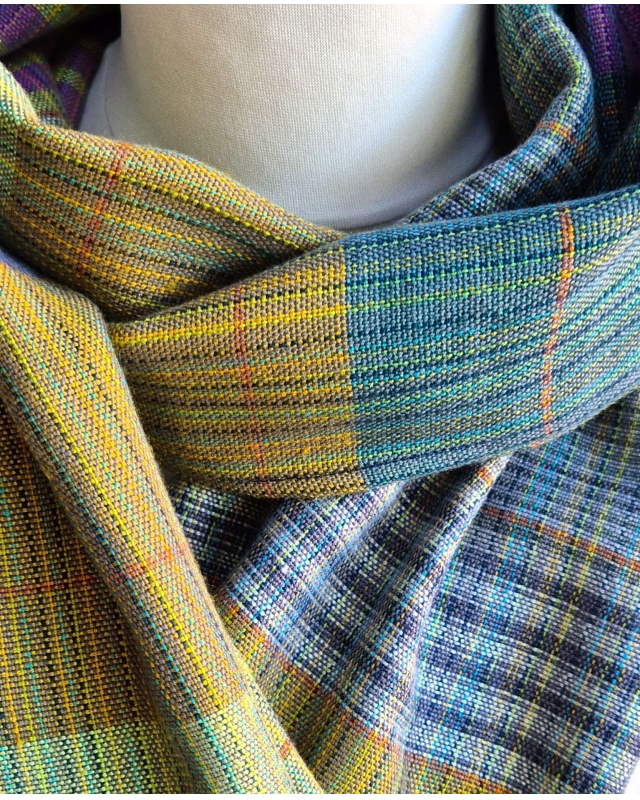 Gyártás: kézi szövés kézzel festett fonalakkal