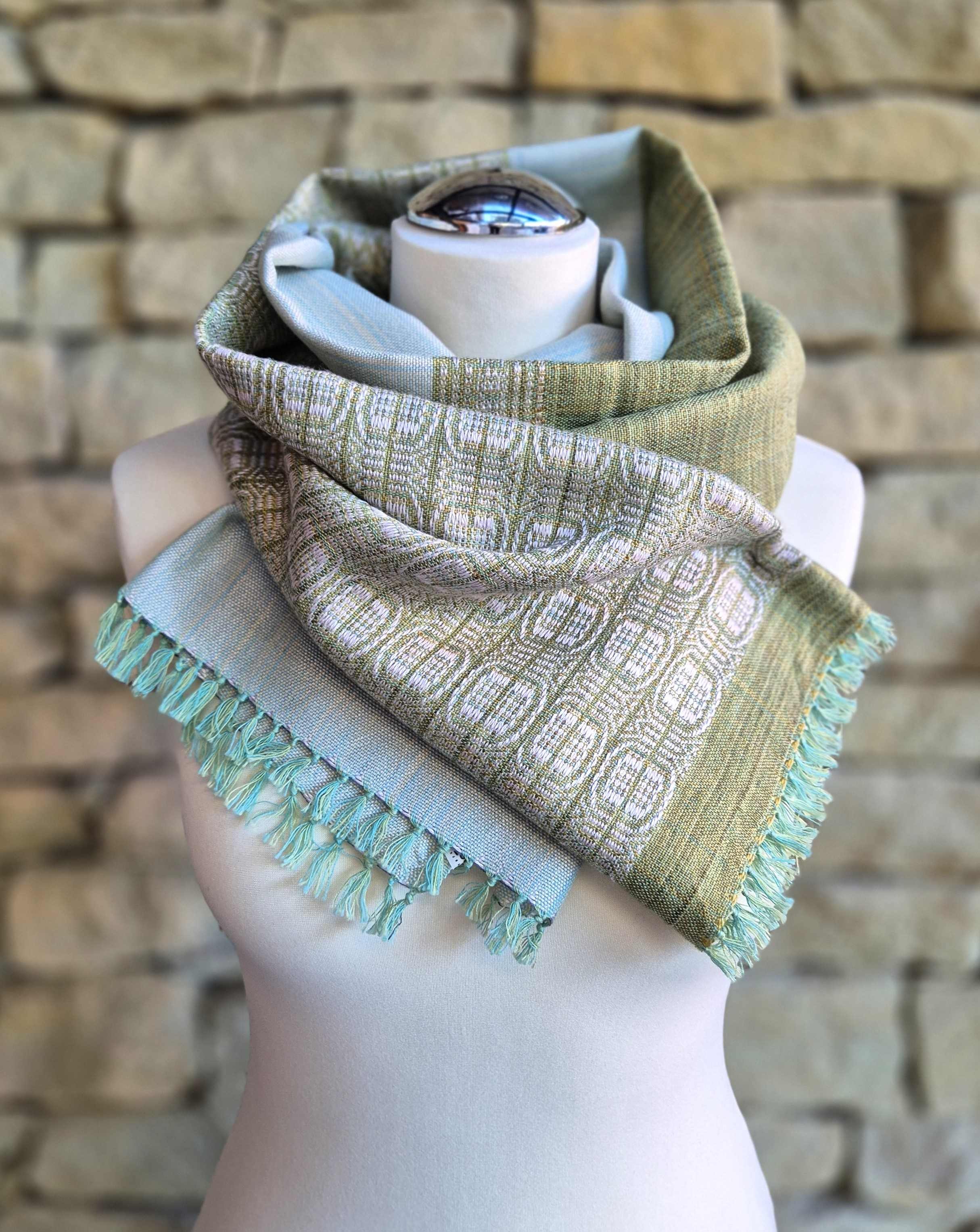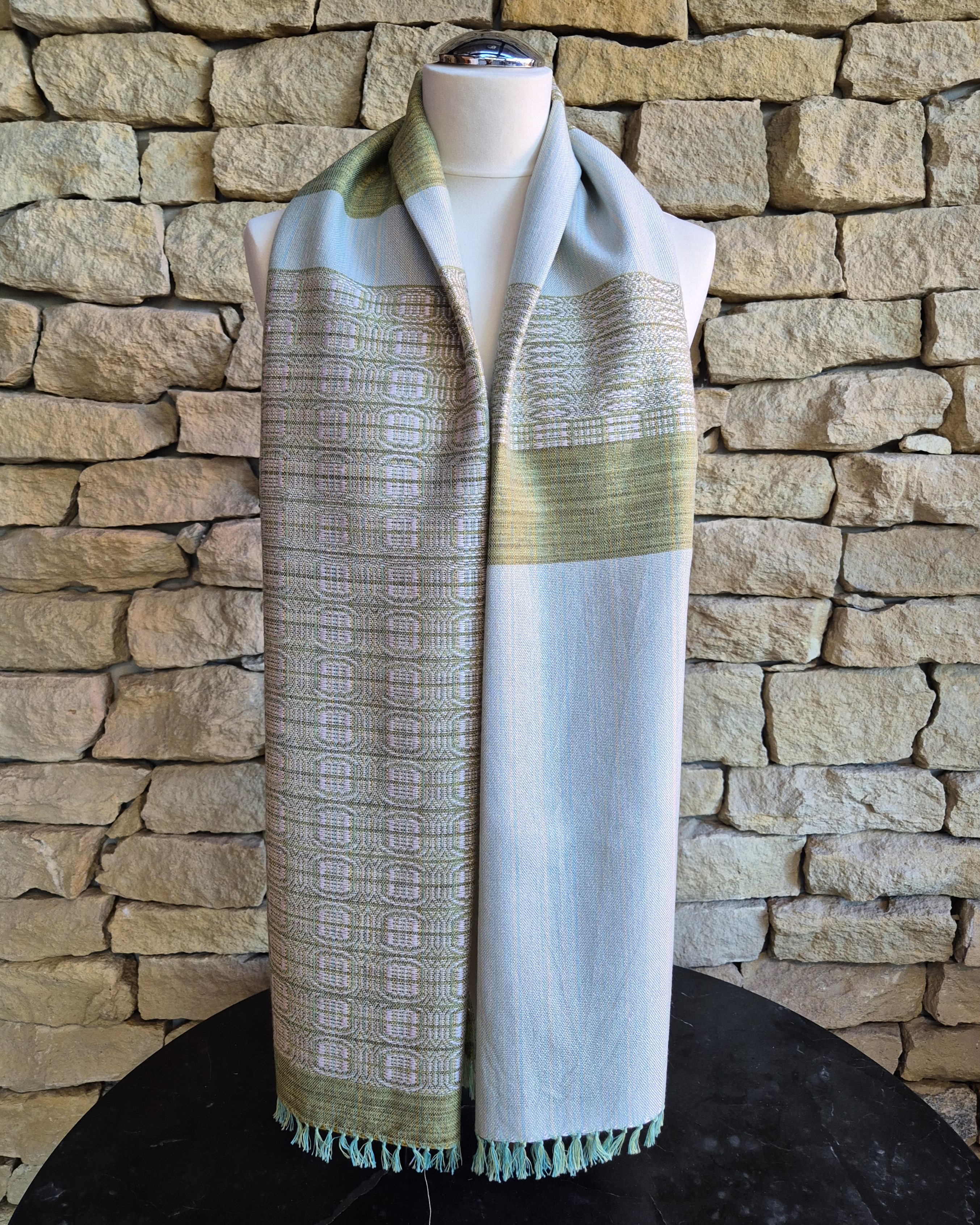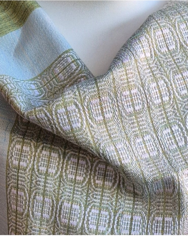 Kézzel szőtt luxus selyem stóla. Takács mintával díszített selyem stóla. Színhangulatát a Bridgreton film kosztümjei ihlették.