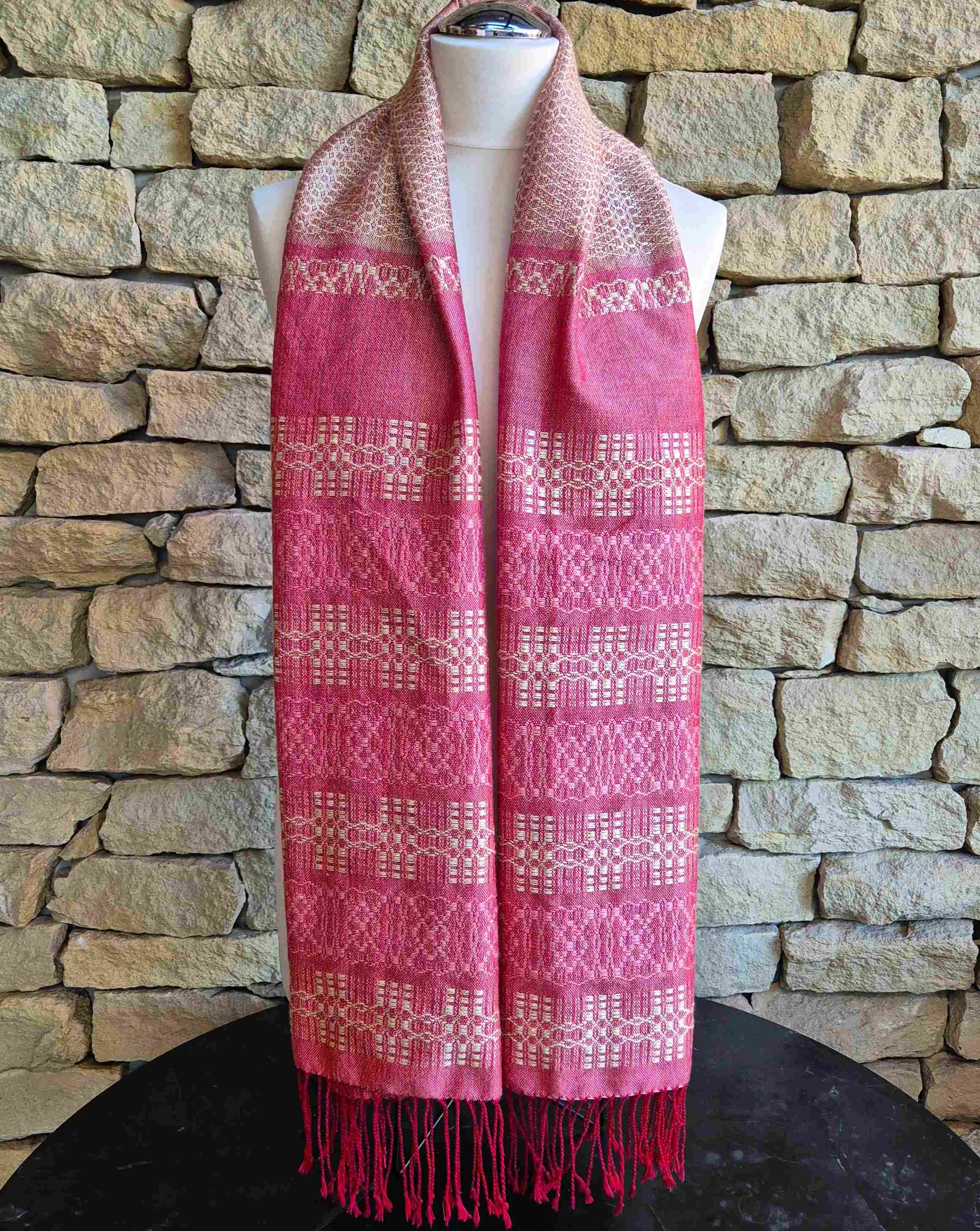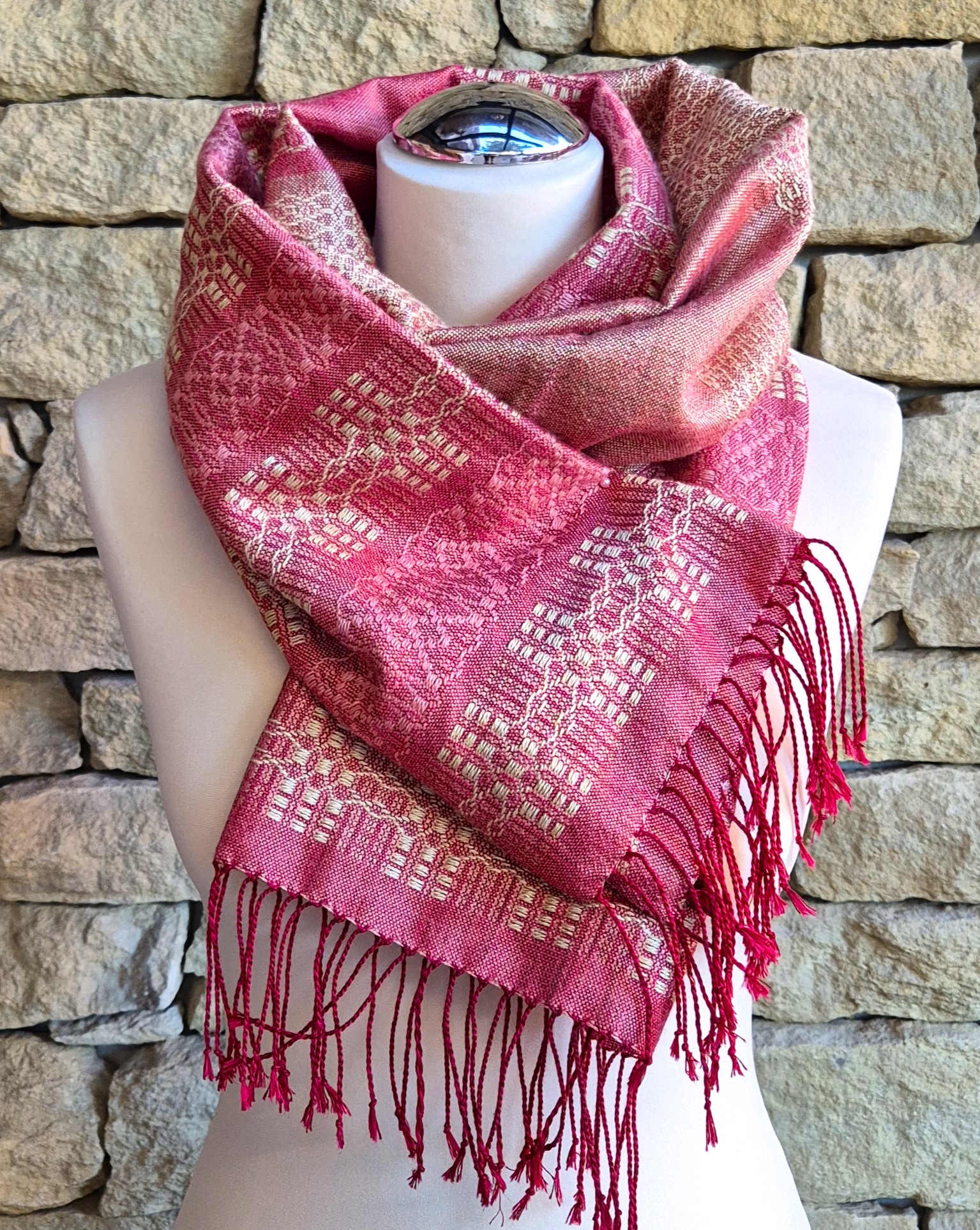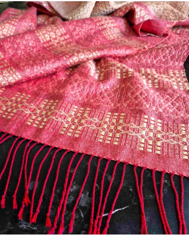Kézzel szőtt luxus selyemsál. Takács mintával díszített szimmetrikus selyemsál.