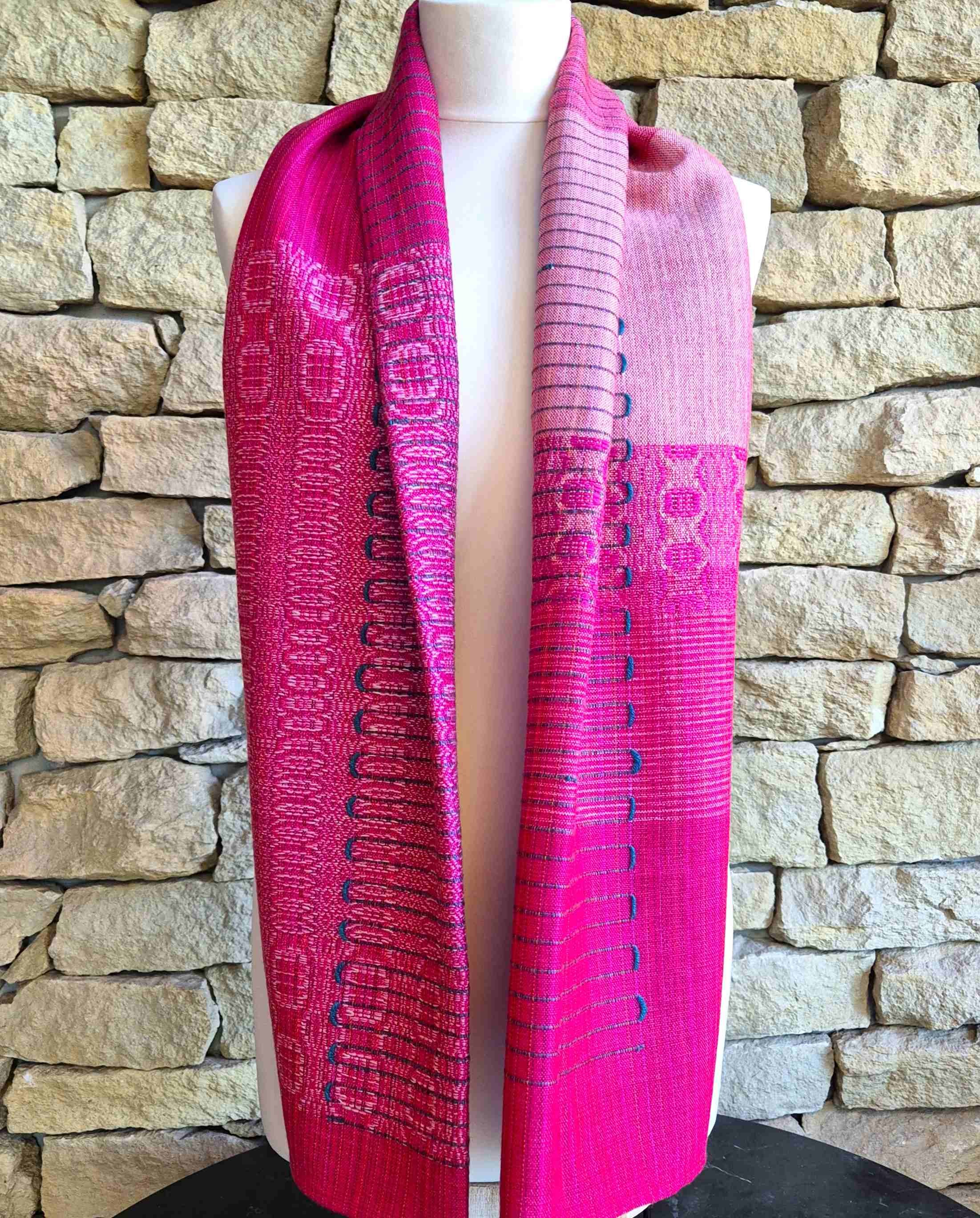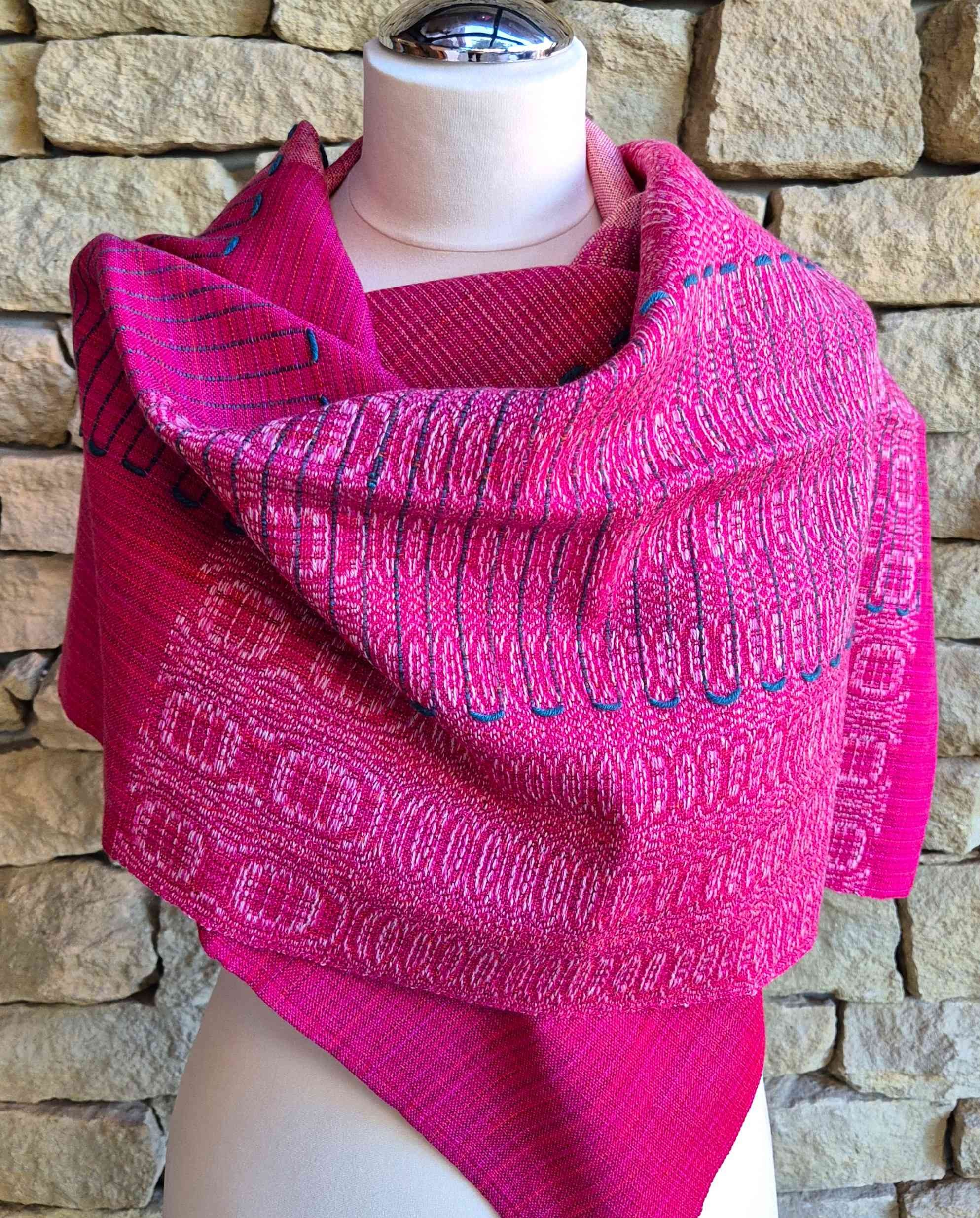 Kézzel szőtt luxus selyemsál. Takács és népi mintával díszített merinó gyapjú és selyemsál.