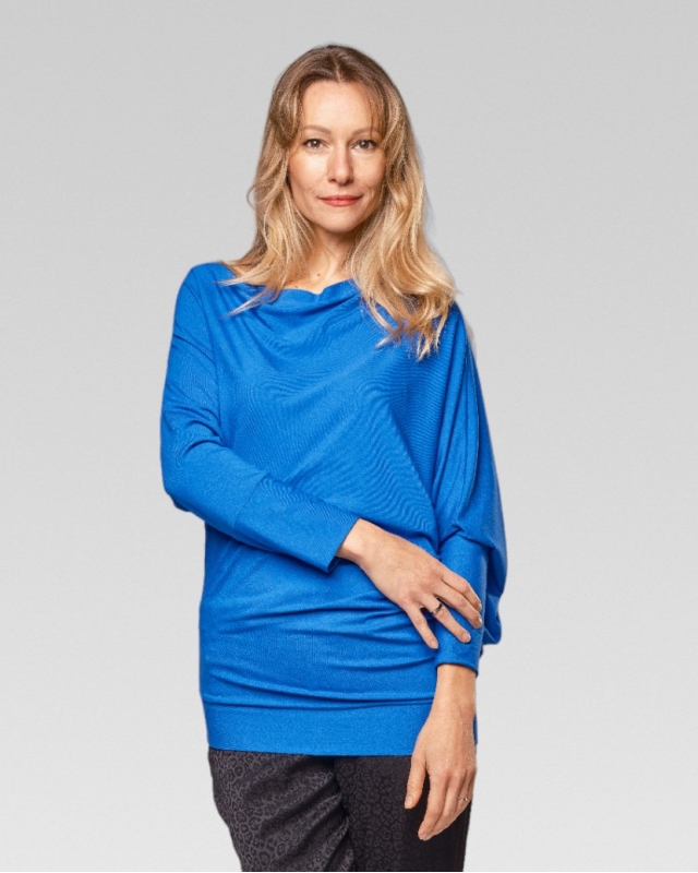 Asszimetrikus top egyik oldala testhez álló, másik oldala bő. Lezser fazona mindig más arcát mutatja, nem egy unalmas darab. Más színben is elérhető